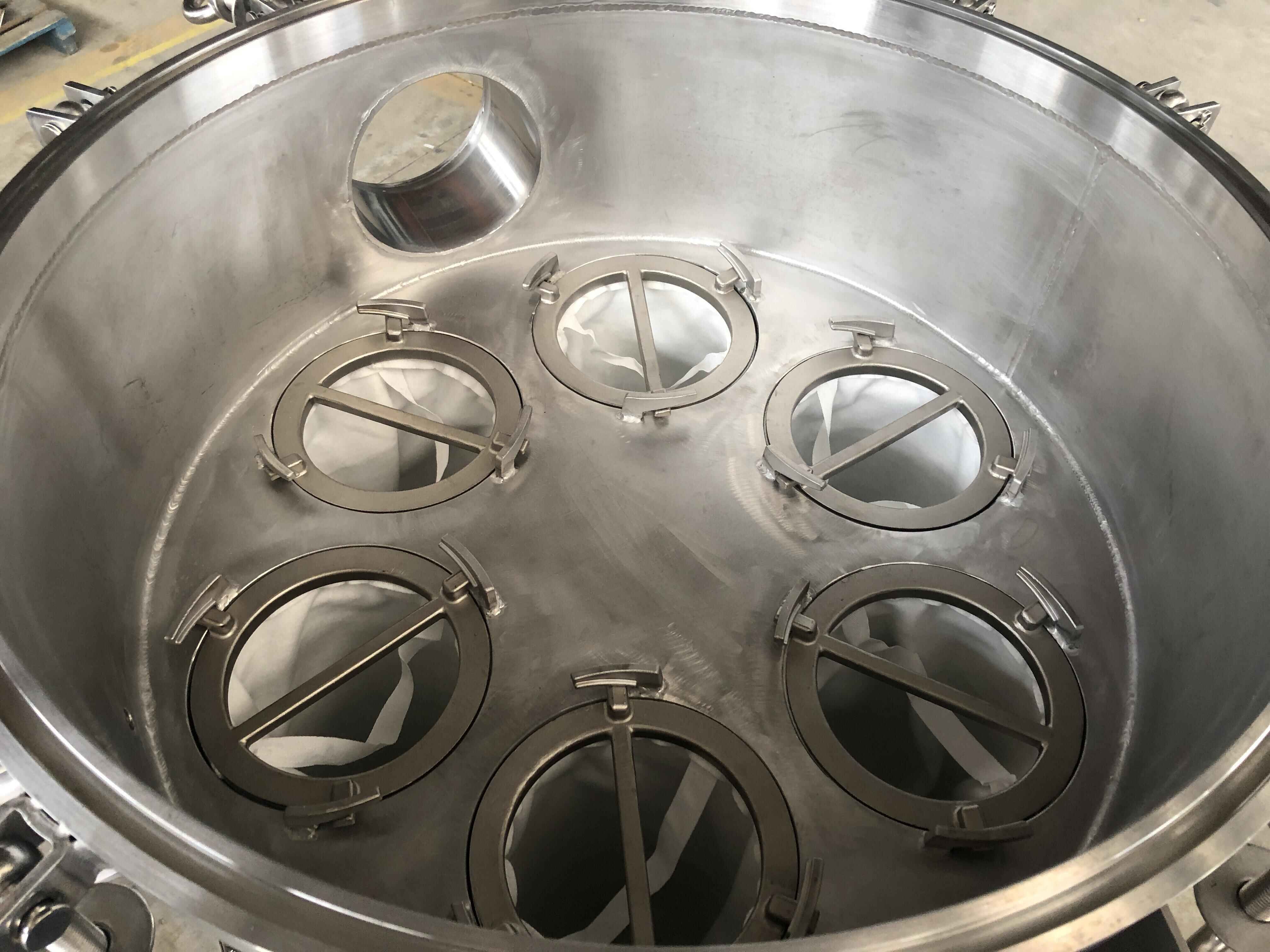 袋式過濾器主要由三部分組成:過濾容器、支承網(wǎng)籃和過濾袋;是新鄉(xiāng)市利菲爾特股份有限公司研發(fā)的一種新型的過濾系統(tǒng),液體由入口流進(jìn),經(jīng)濾袋過濾后從出口流出,雜質(zhì)被攔截在濾袋中濾出顆粒雜質(zhì)被截留在過濾袋內(nèi),完成過濾過程。為了保持過濾器高效暢通和過濾精度以及確保下游液體不被污染,運(yùn)行一段時間后應(yīng)停機(jī),打開濾器端蓋,把截留物和濾袋一起取出,更換新的濾袋,更換周期視實(shí)際情況而定。LFD系列不銹鋼袋式過濾器是根據(jù)配用濾袋大小分為1、2、3、4號袋濾器。按濾器含袋數(shù)分為單袋式、雙袋式和多袋式;