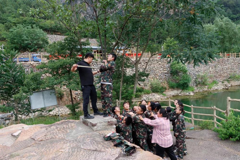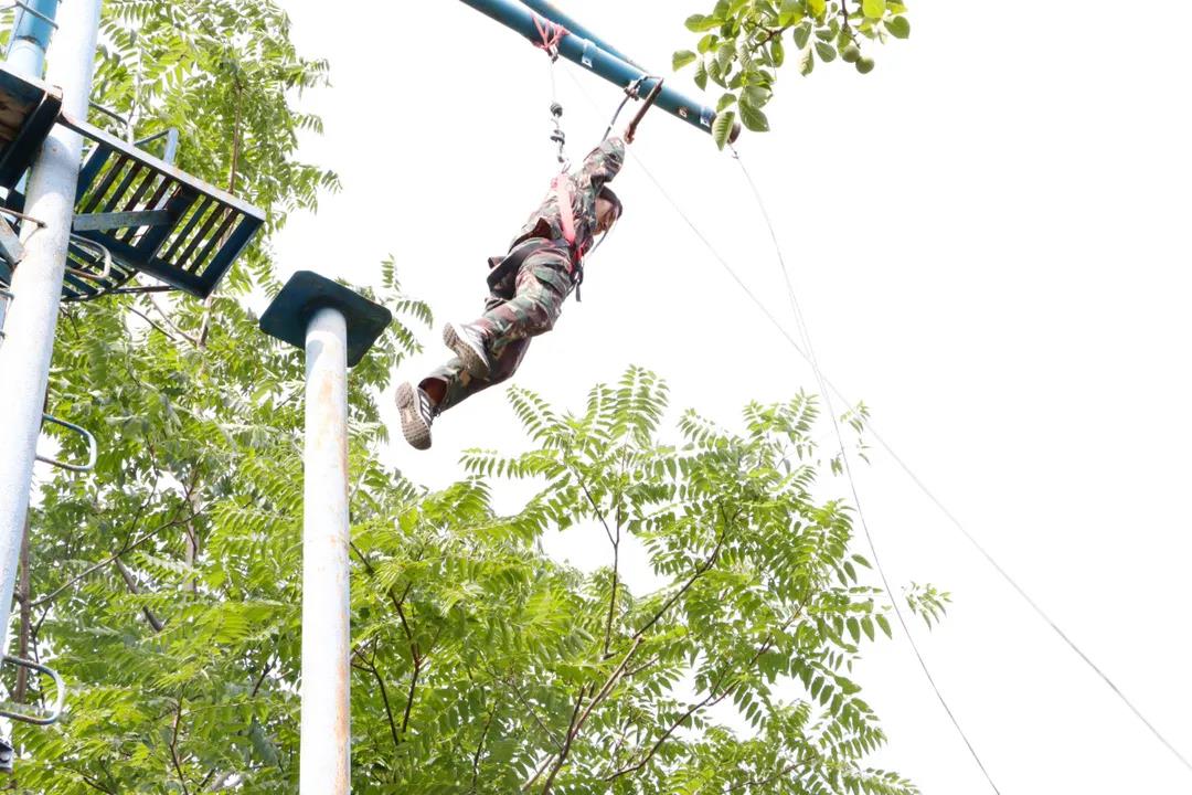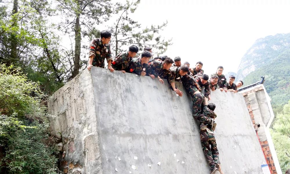 在教練的指導下,先后進行了“信任背摔”、“盲人方陣”、“高空斷橋”、“畢業(yè)墻”等訓練項目,其中壓軸的“畢業(yè)墻”項目將本次拓訓推向了高潮,在不借用任何外力和道具的情況下,70名新戰(zhàn)友依靠團隊協(xié)作的力量僅僅耗時13分08秒,徒手攀登4.2米高墻全員通關(guān),挑戰(zhàn)成功!