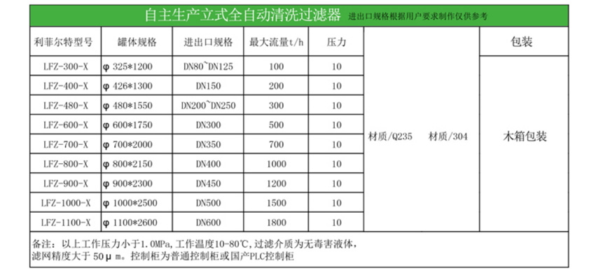 重力雜質(zhì)刷式自清洗過(guò)濾器選型規(guī)格表