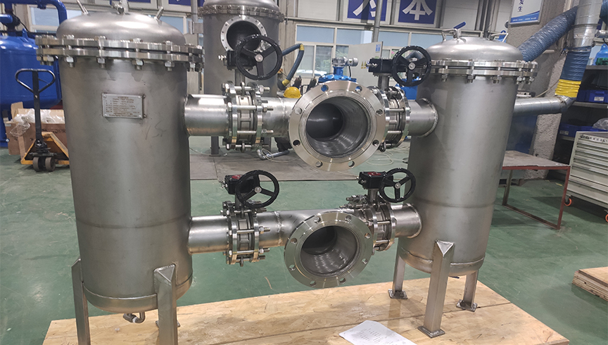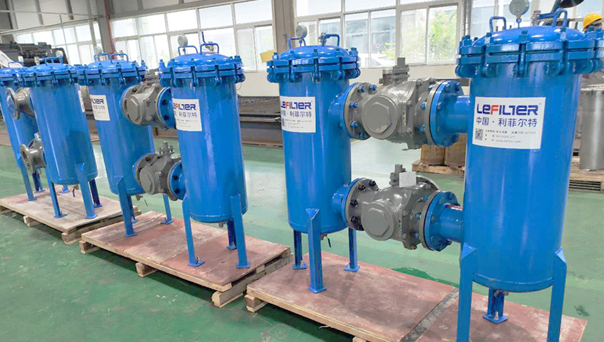 雙聯(lián)過濾器又稱并聯(lián)雙切換過濾器,是由兩只單筒過濾器及全通徑三通球閥組成,結(jié)構(gòu)簡單,使用方便,以達(dá)到保證系統(tǒng)安全的目的。 在工作過程中,單筒過濾器濾芯堵塞到一定程度需清洗或更換濾芯時,要停止主機(jī)工作來更換濾芯,這樣不僅浪費(fèi)時間更不能滿足主機(jī)連續(xù)工作的需要,雙筒過濾器有效地解決了單筒過濾器這方面的缺點(diǎn),在不停機(jī)的情況下可清洗或更換濾芯來保證主機(jī)正常連續(xù)工作。