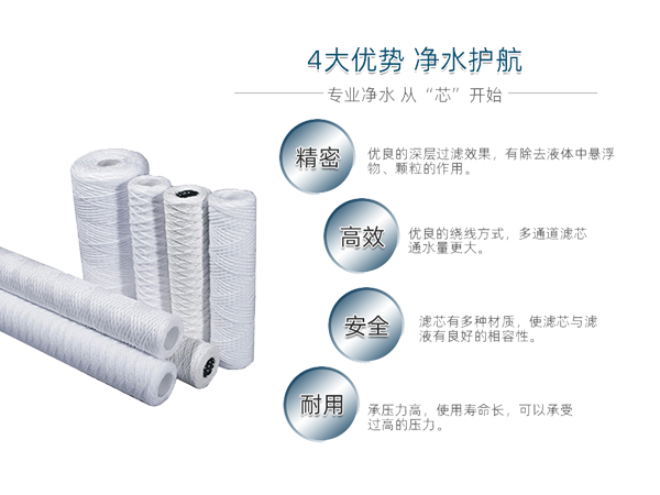 7、線(xiàn)繞濾芯由不同多種材料制成,確保各種液體過(guò)濾要求,達(dá)到較佳過(guò)濾效果。