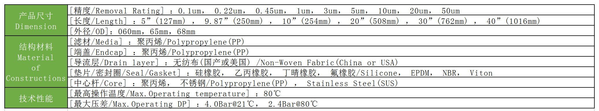 全PP材質使得濾芯具有良好的化學相容性,適合多種液體過濾。